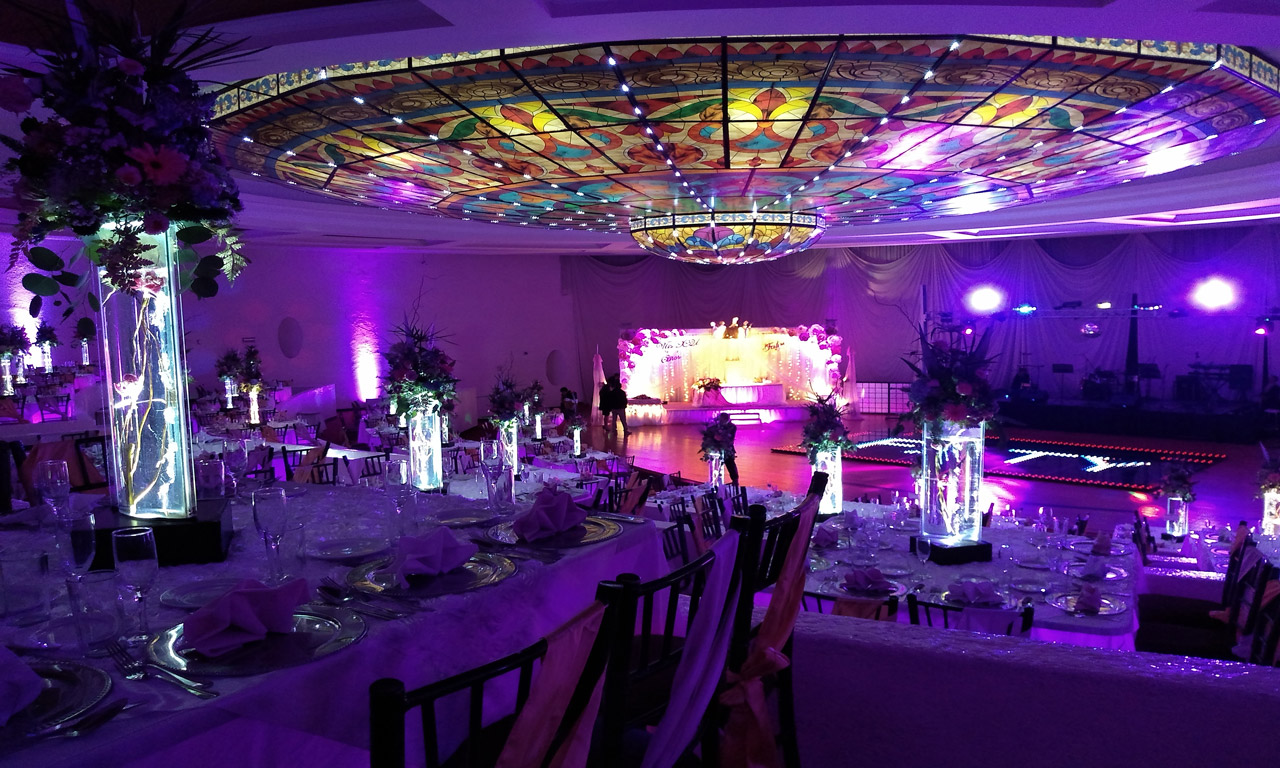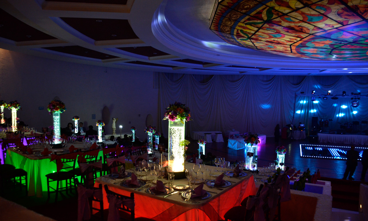 Salón “Casino” con una capacidad de 100 hasta 500 personas con un estilo único, es un salón en desniveles “tipo teatro”, con una tecnología de punta (pista inteligente, iluminación arquitectónica, iluminación robótica, galaxia en el plafón, iluminación computarizada en mesas y un elegante vitral).
