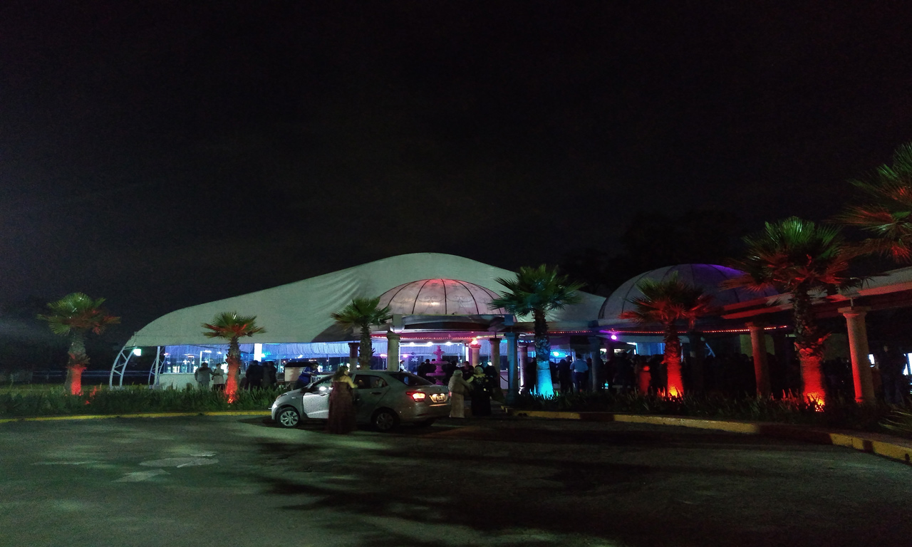 Salón “Jardín”, espectacular carpa con cristales para poder disfrutar de la vista de nuestros maravillosos jardines y de nuestro hermoso lago, rodeado de antorchas. Donde se destacan las telas en el plafón, y su espectacular candil, donde la luz arquitectónica le da una belleza, muy peculiar. La capacidad es desde 100 personas hasta 2000 personas.